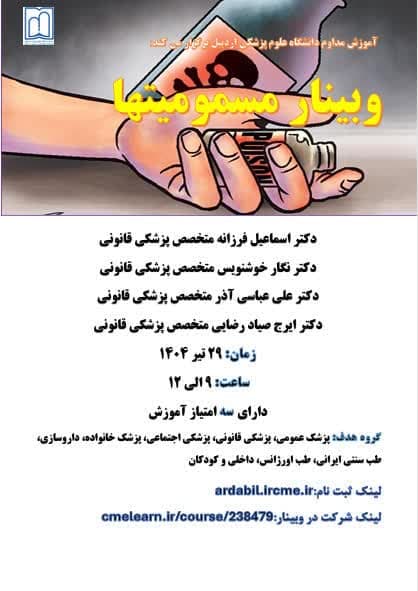 مرکز آموزش مداوم دانشگاه علوم پزشکی اردبیل برگزار می کند: وبینار آموزشی مسمومیت ها