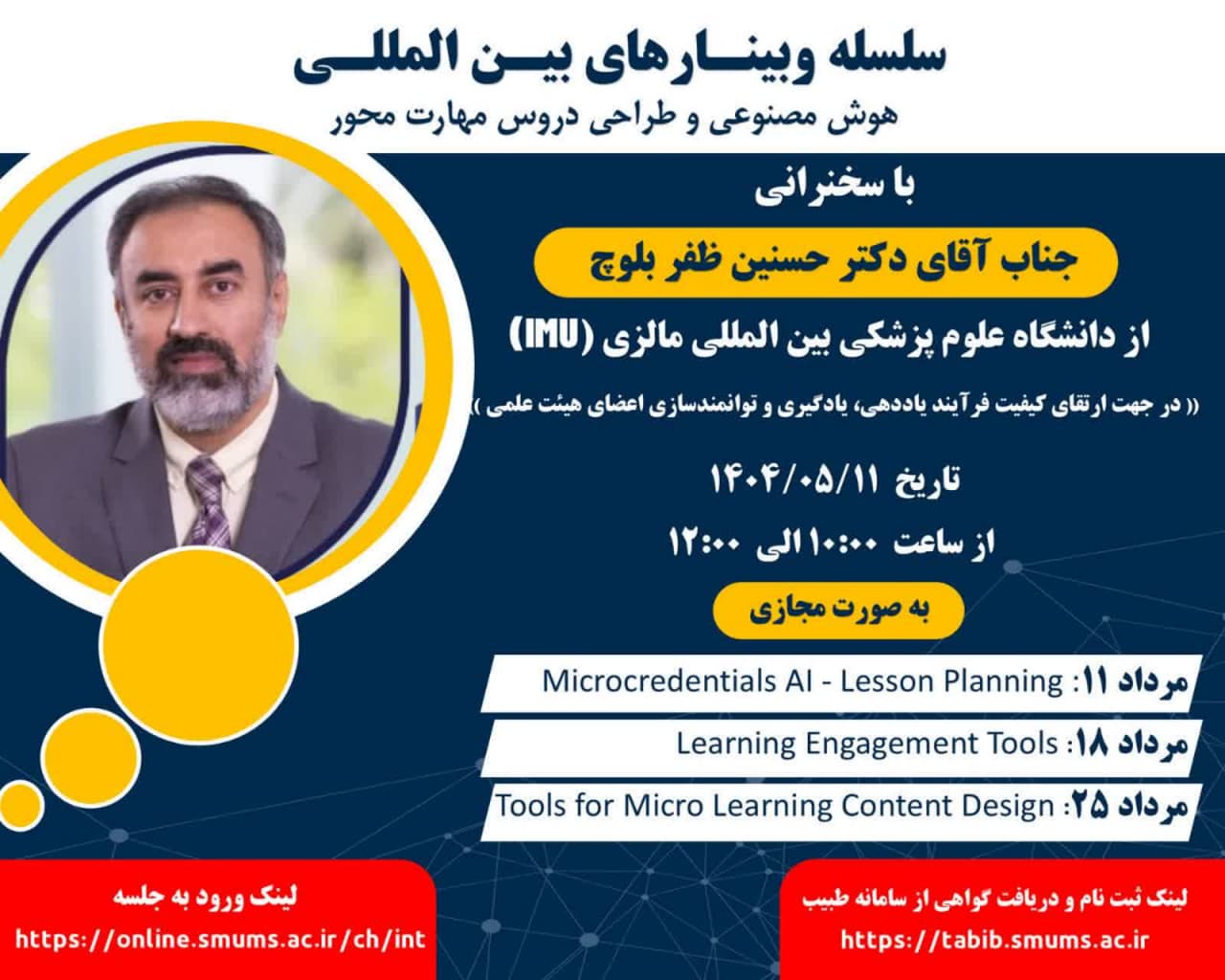 وبینار بین المللی با عنوان Micro credentials AI - lesson Planning با سخنرانی جناب آقای دکتر حسنین ظفر بلوچ