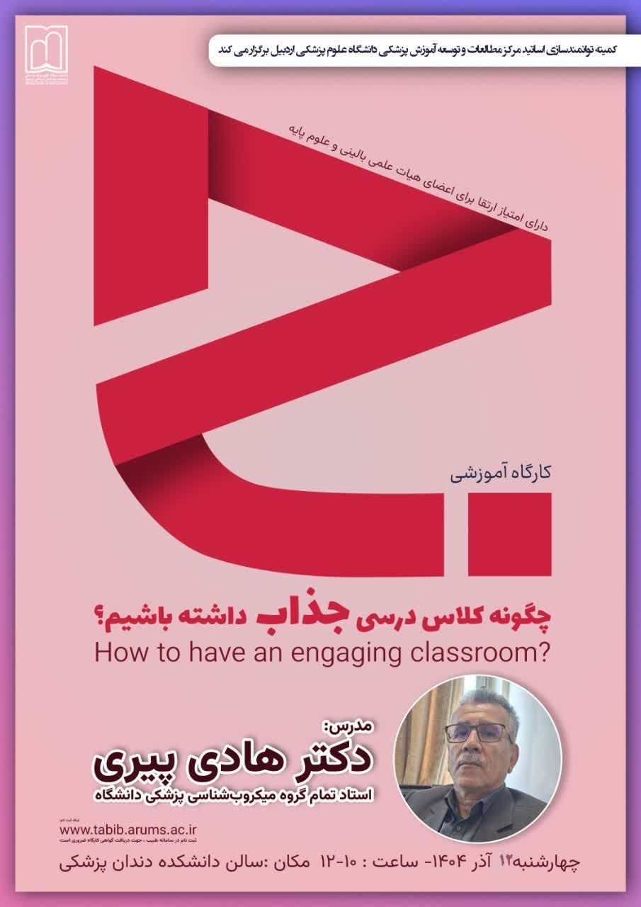 از سری جلسات توانمند سازی اساتید علوم پایه و بالینی، مرکز مطالعات و توسعه آموزش (EDC) دانشگاه علوم پزشکی اردبیل برگزار می کند:
